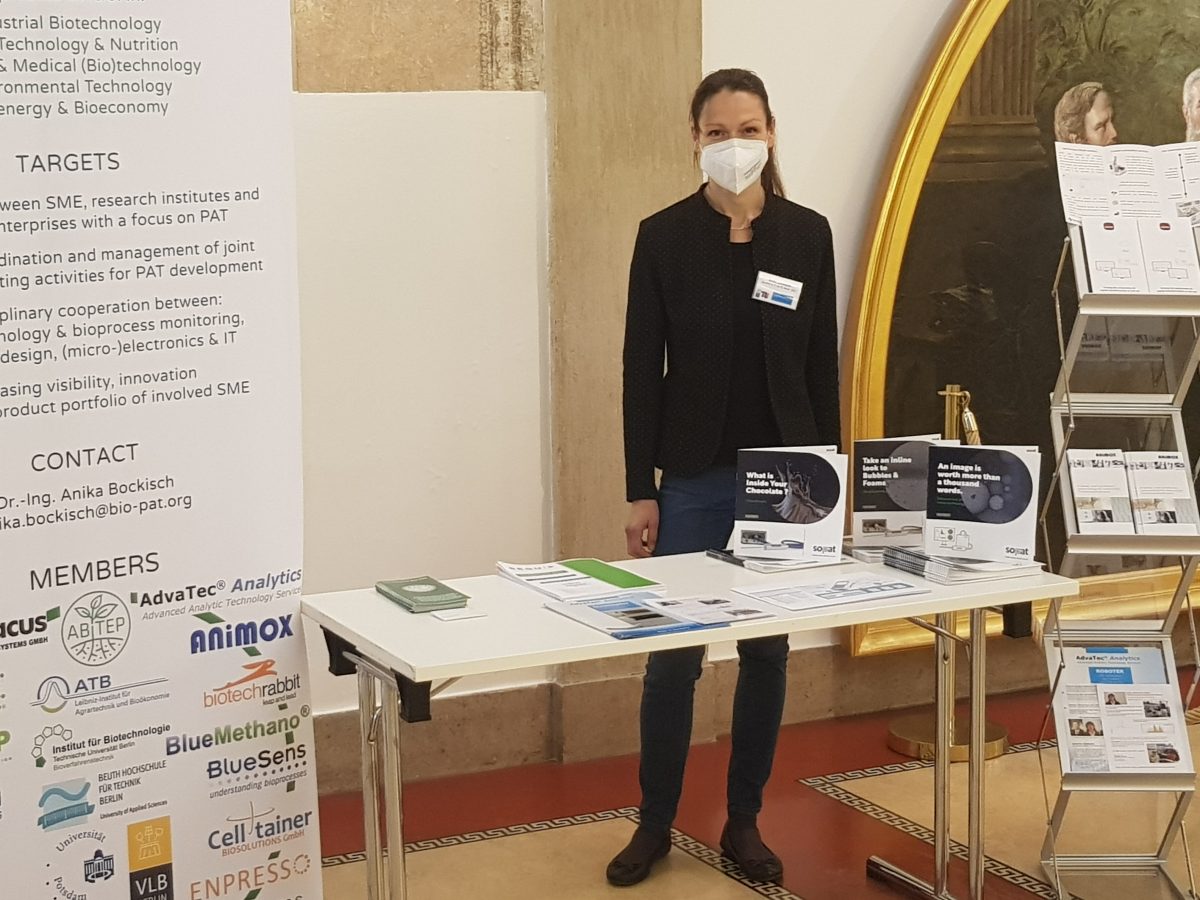 The network Bio-PAT was one of the exhibitors as well as some of its members, such as the BlueSens gas sensor GmbH, Celltainer Biosolutions GmbH, Enpresso GmbH and KNAUER Wissenschaftliche Geräte GmbH. More members (AdvaTec® Analytics GmbH, Abacus Analytical Systems GmbH, ANiMOX GmbH, OSPIN GmbH, Sequip S+E GmbH and SOPAT GmbH) provided information material, which was presented at the Bio-PAT booth.